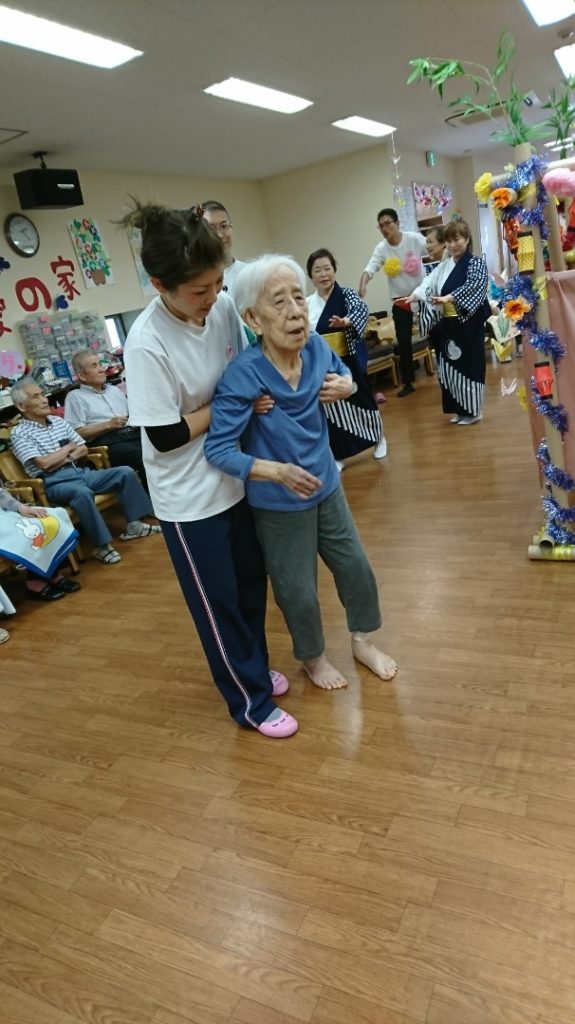 足が動きにくい方も音頭に合わせてなら不思議と足が動き、スタッフの手を借りどんどん踊りの輪に入っていかれます。