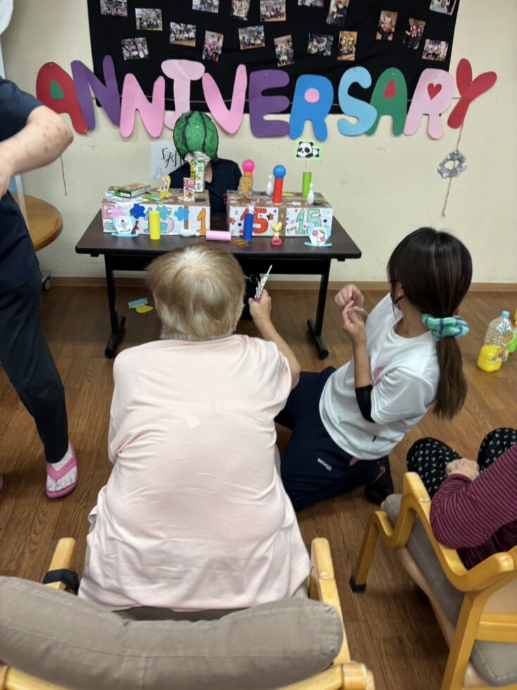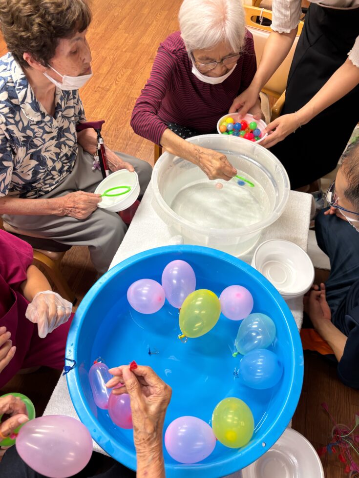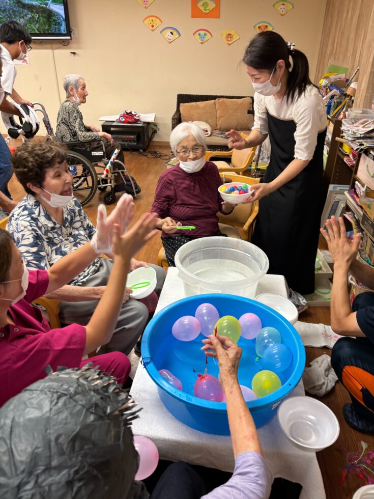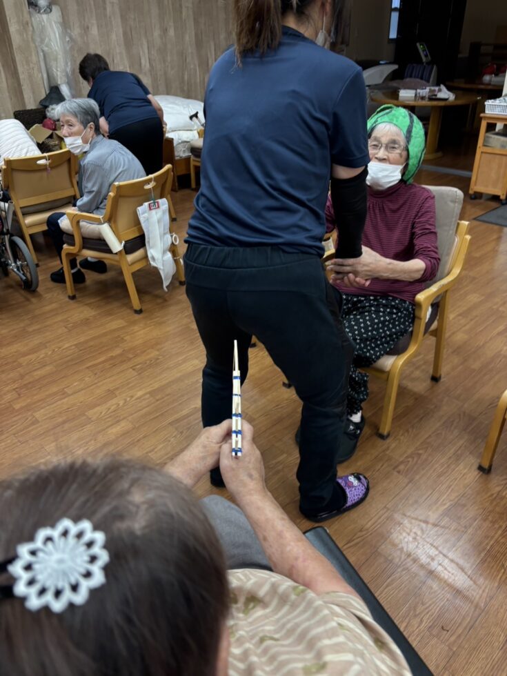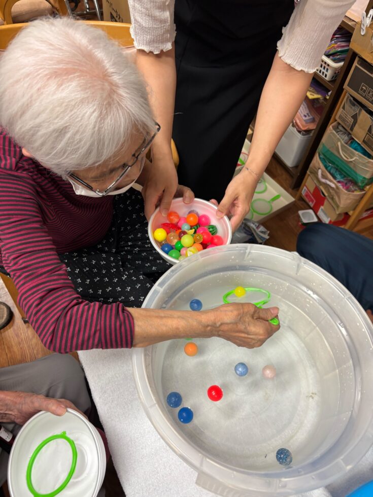 横に居られたお孫さんや他のご利用者様も「すごい!すごい!もうちょっとやで!」と盛り上がってます。驚異のスーパーボール全部すくいを達成しそうなんです!