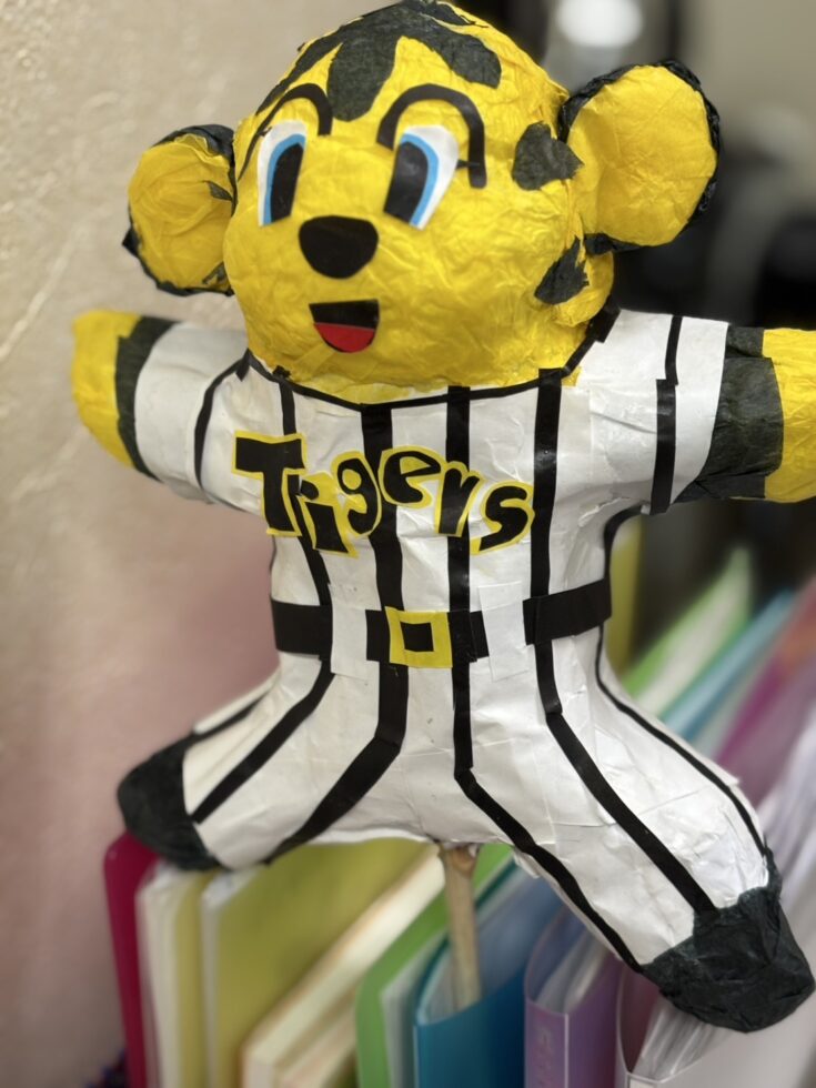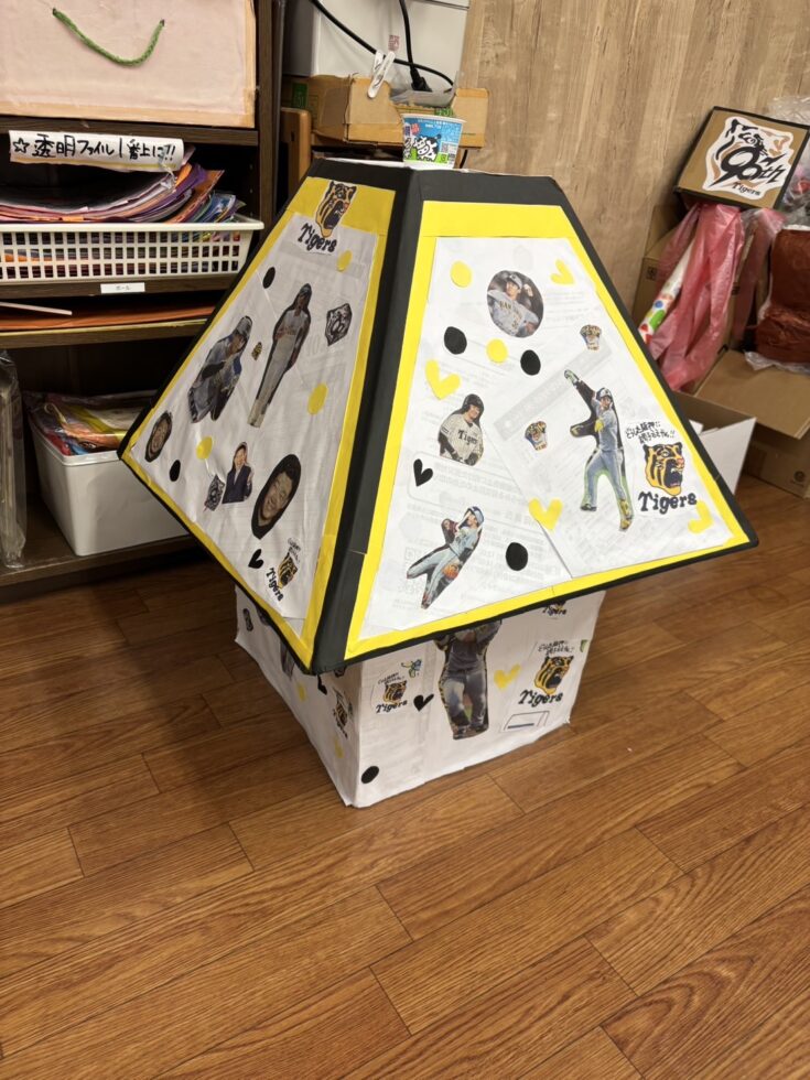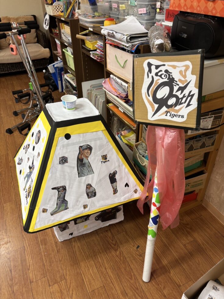 阪神優勝は何も関係ないんですが、阪神タイガース大好きスタッフが私物のユニフォームなど大量に持って来ていて着させてもらいました。