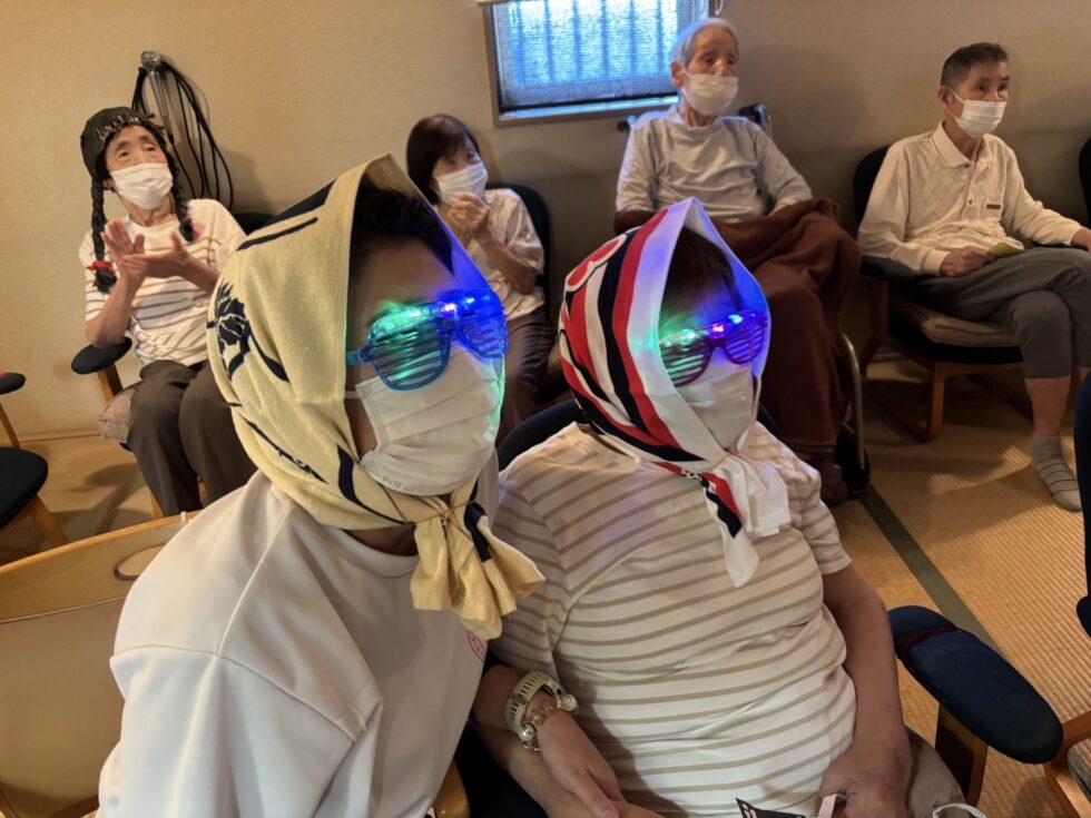 カラオケ🎤を早くに終えたご利用者様が私に「カラオケ済んだからあんたと遊んだるわ!何する?」とお誘い下さったので早速…2人で同じ格好をして、カラオケ室に潜入。