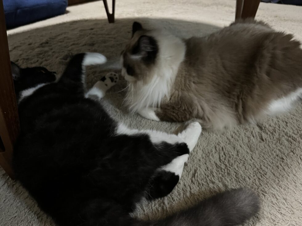 うちの二匹の猫ちゃんのその後ですが、すっかり仲良しになりました💛