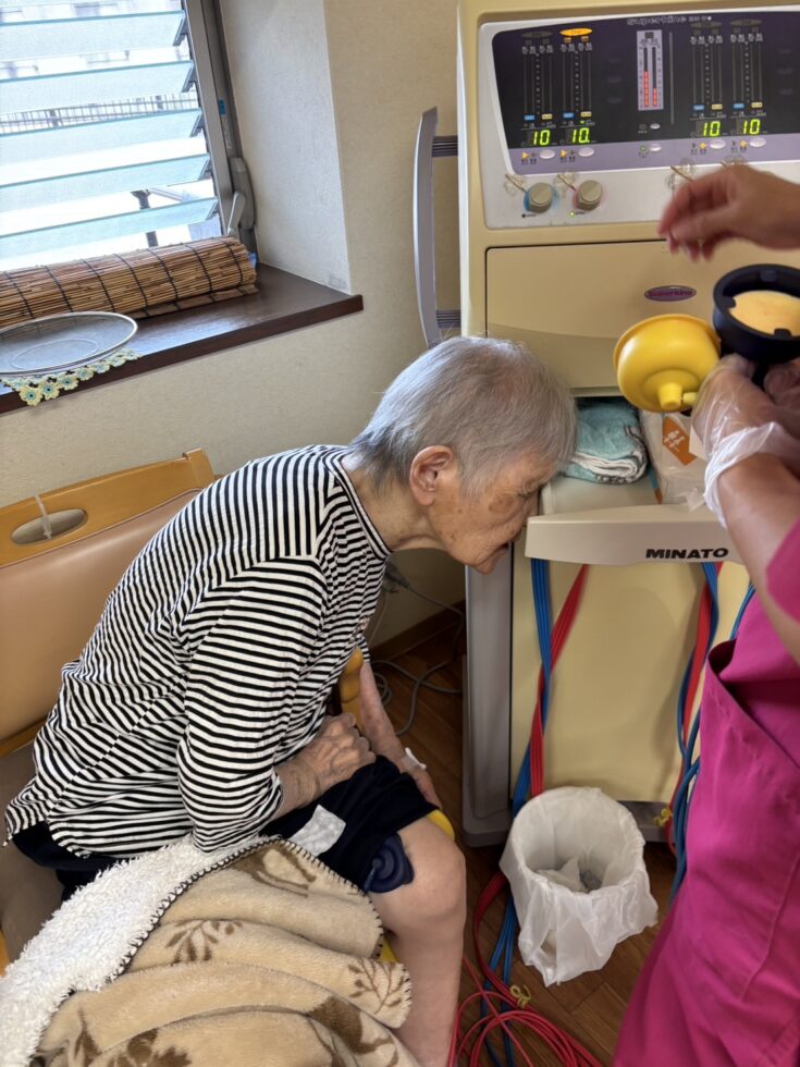やっぱり忘れてる〜と思っていると、「あぁ!昨日何か言うてたな!」と思い出され、機械に頭をくっつけたり、機械をノックしてみたり真剣に聞き入っておられました。
