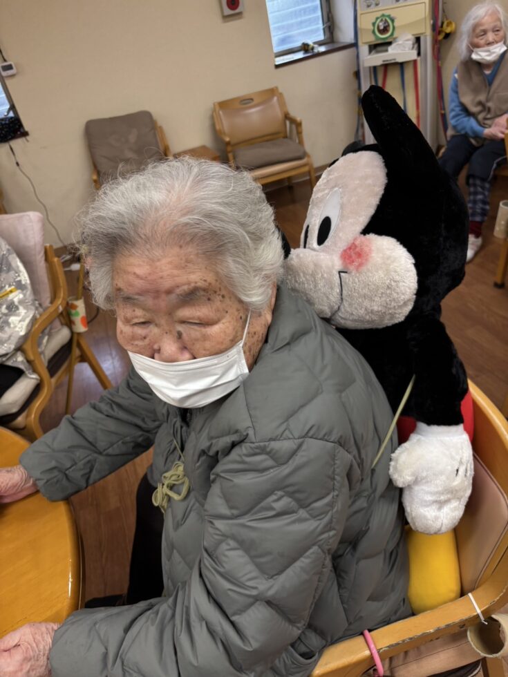 ご利用者様がぬいぐるみを抱っこされた時に「何か落ち着くわぁ〜」と仰っていたので、持ち帰りの提案したんです。