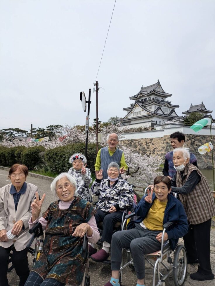 お城と桜 2026.04.12 X facebook hatena pocket line かなり桜も散ってしまいましたね。 先週、アクア入居者様たちも久しぶりに外出✨ 綺麗な桜が見れました✨ 皆様に喜んでいただけてヒガシノもうれしー(#^^#) この記事をシェアする X facebook hatena pocket line この記事を書いた人 ヒガシノ 元気に楽しく笑顔で!! 毎日頑張るぞー 役職 デイサービスAQUA管理者 血液型 A型 趣味 食べること(特にお菓子♪) 得意なこと 5分以内で睡眠できます。 苦手なこと 競いごと